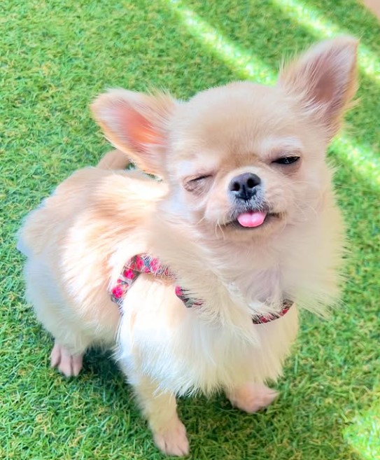 あめちゃんは他のわんちゃんが苦手で来ました。他のわんちゃんにグイグイ来られるのが苦手なのでちゃんと私たちが守ってあげて安心して貰えるように頑張っています!